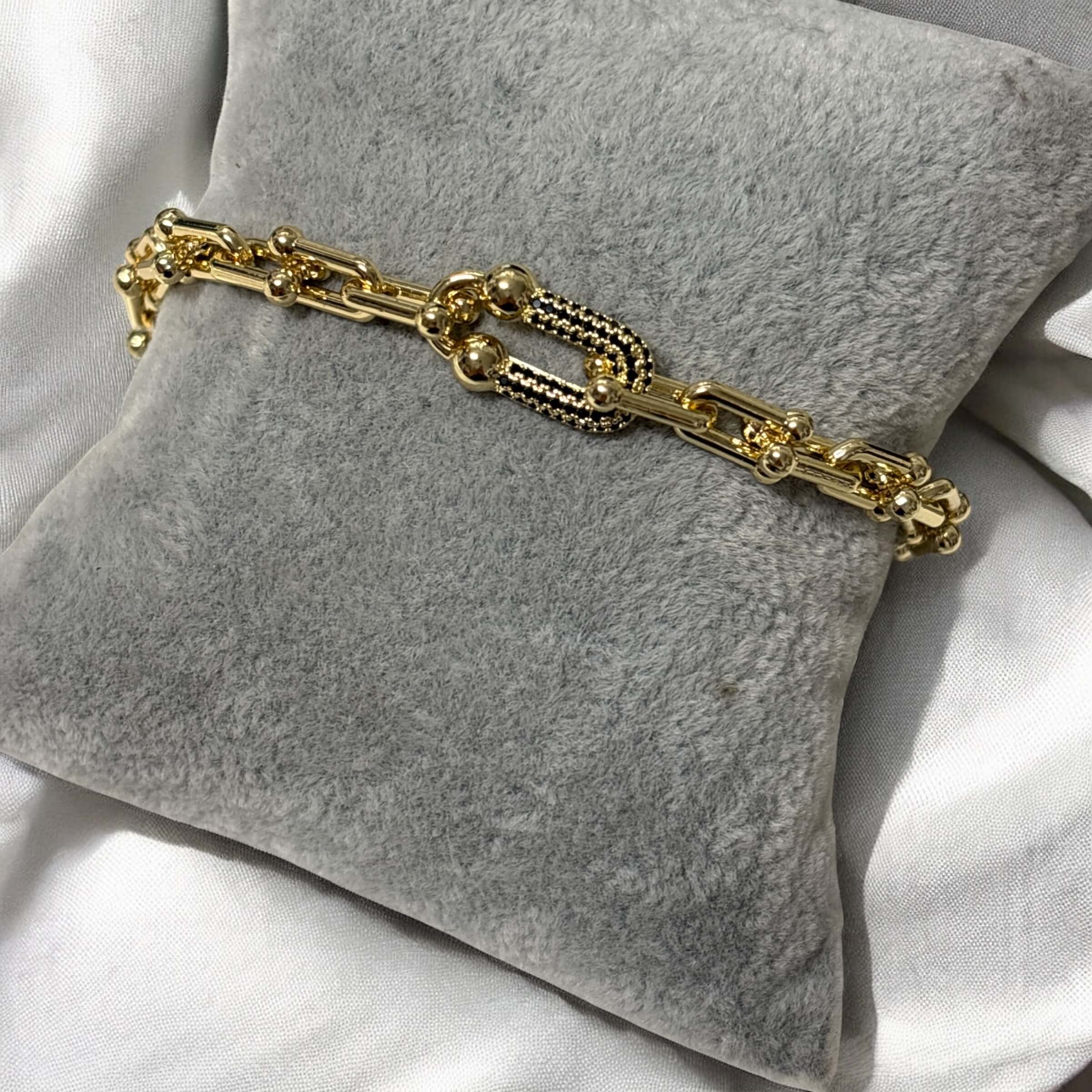 Przedstawiamy wyjątkową bransoletkę ze stali chirurgicznej 316L w kolorze złotym tifani z czarnymi cyrkoniami. To elegancki dodatek, który doda szyku każdej stylizacji.