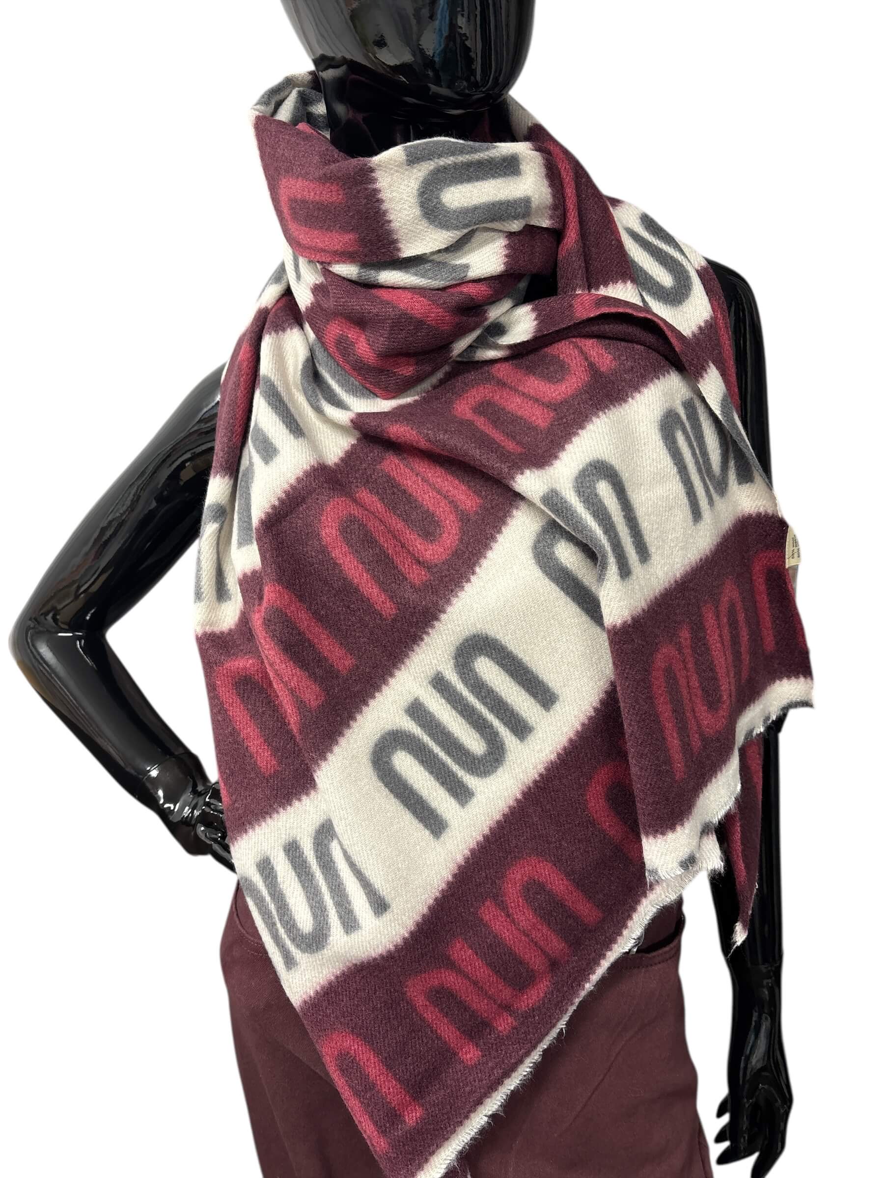 Ciepły WEŁNIANY SZAL NIU NIU BORDOWO-BEŻOWY