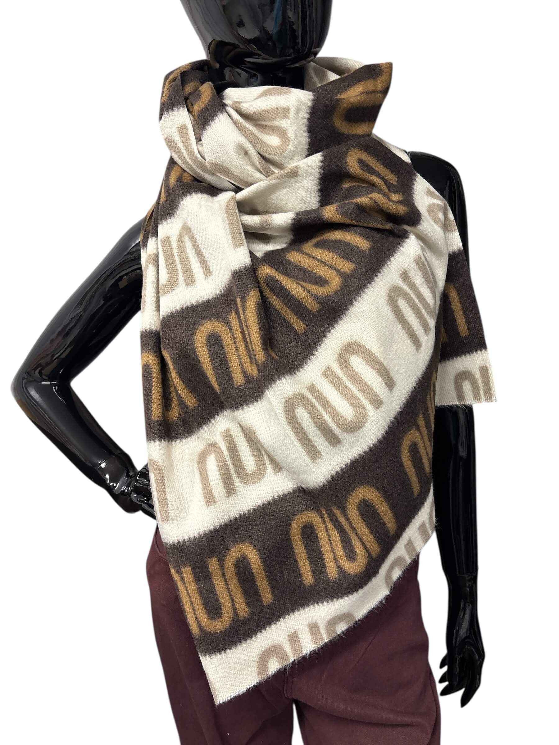 Ciepły WEŁNIANY SZAL NIU NIU BRĄZOWO-BEŻOWY