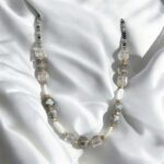 Biało-szare koraliki i kryształki oto minimalistyczny, ale efektowny element, który przyciąga wzrok. Jego prosta forma sprawia, że łańcuszek doskonale komponuje się z różnorodnymi stylizacjami. Możesz go nosić zarówno z casualowymi, jak i bardziej eleganckimi outfitami, co czyni go wszechstronnym dodatkiem.
