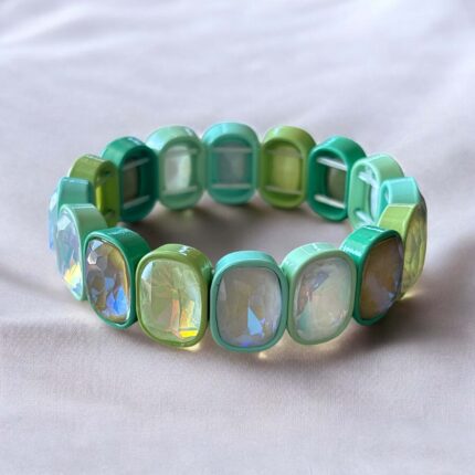 Bransoletka z zielonymi kryształkami emaliowana na gumce