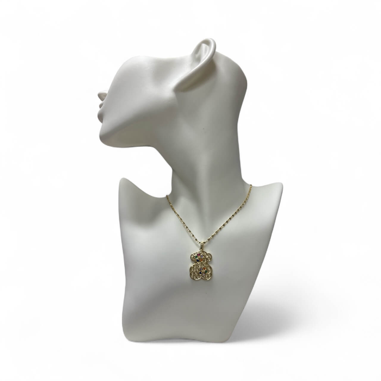 Nie zwlekaj! Zamów nasz złoty ażurowy miś z kolorowymi cyrkoniami już teraz i ciesz się eleganckim dodatkiem, który wzbogaci każdą Twoją stylizację.