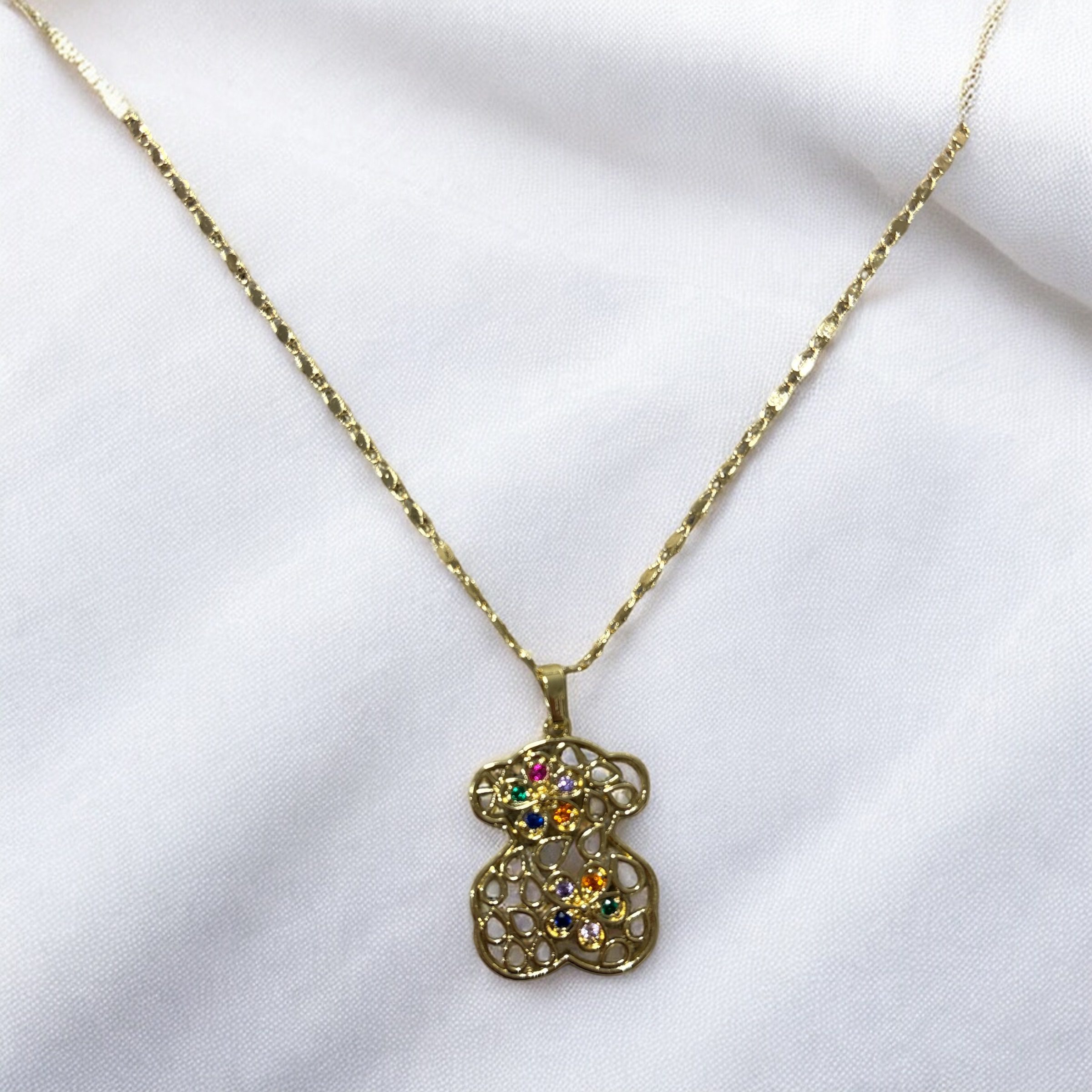 Naszyjnik ażurowy miś z kolorowymi cyrkoniami