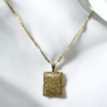 Ażurowy prostokąt to minimalistyczny, ale efektowny element, który przyciąga wzrok. Jego prosta forma sprawia, że łańcuszek doskonale komponuje się z różnorodnymi stylizacjami. Możesz go nosić zarówno z casualowymi, jak i bardziej eleganckimi outfitami, co czyni go wszechstronnym dodatkiem.
