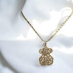Naszyjnik stal chirurgiczna złoty miś z czarnymi ażurowymi kwiatuszkami