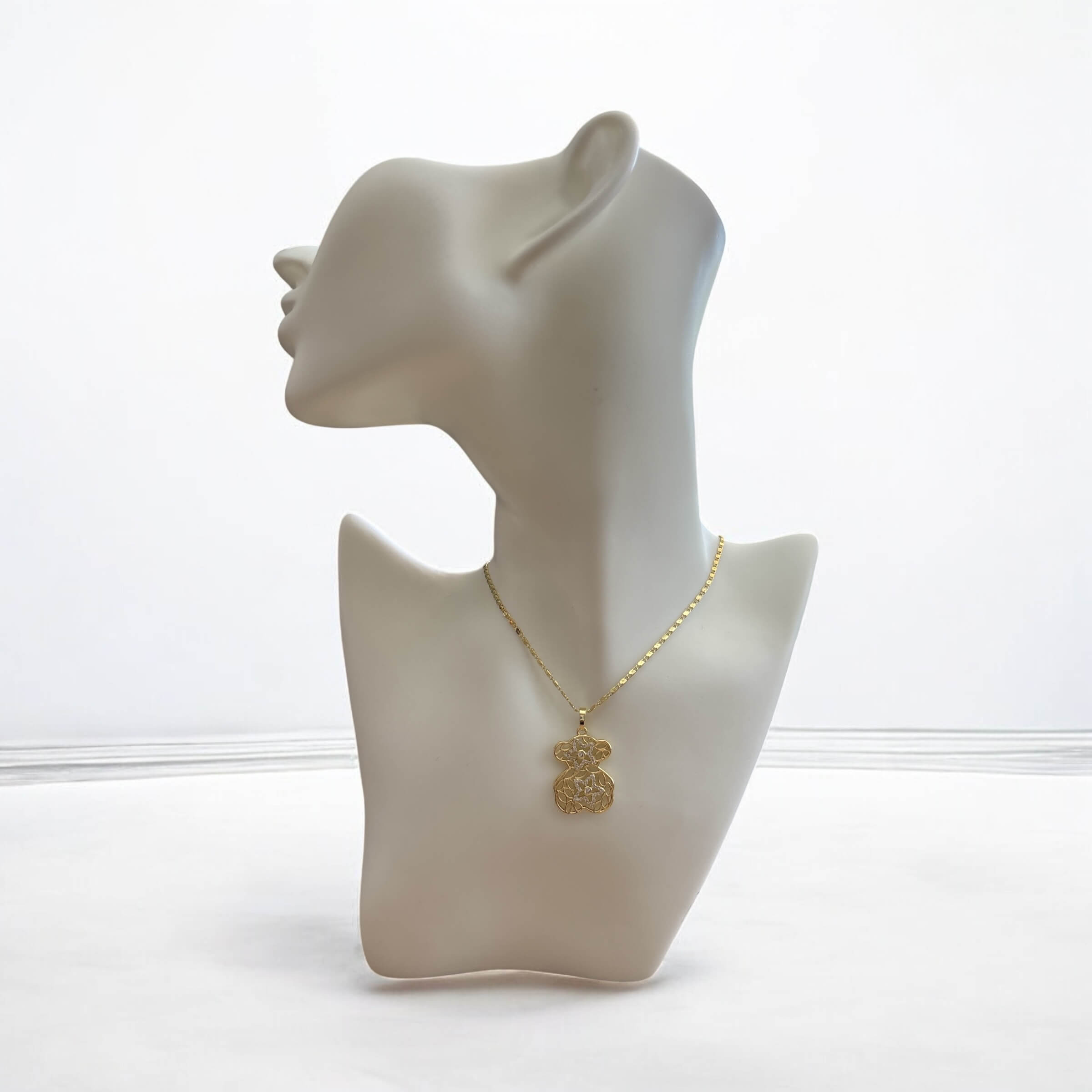 Strona główna BIŻUTERIA STAL CHIRURGICZNA Łańcuszki Naszyjnik złote ze stali chirurgicznej Naszyjnik stal chirurgiczna złoty miś z białymi ażurowymi kwiatuszkami