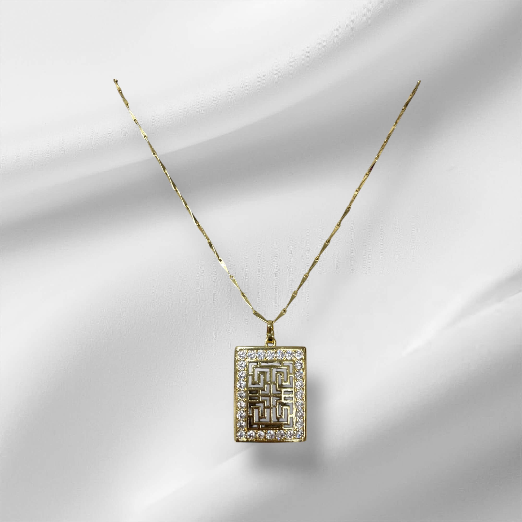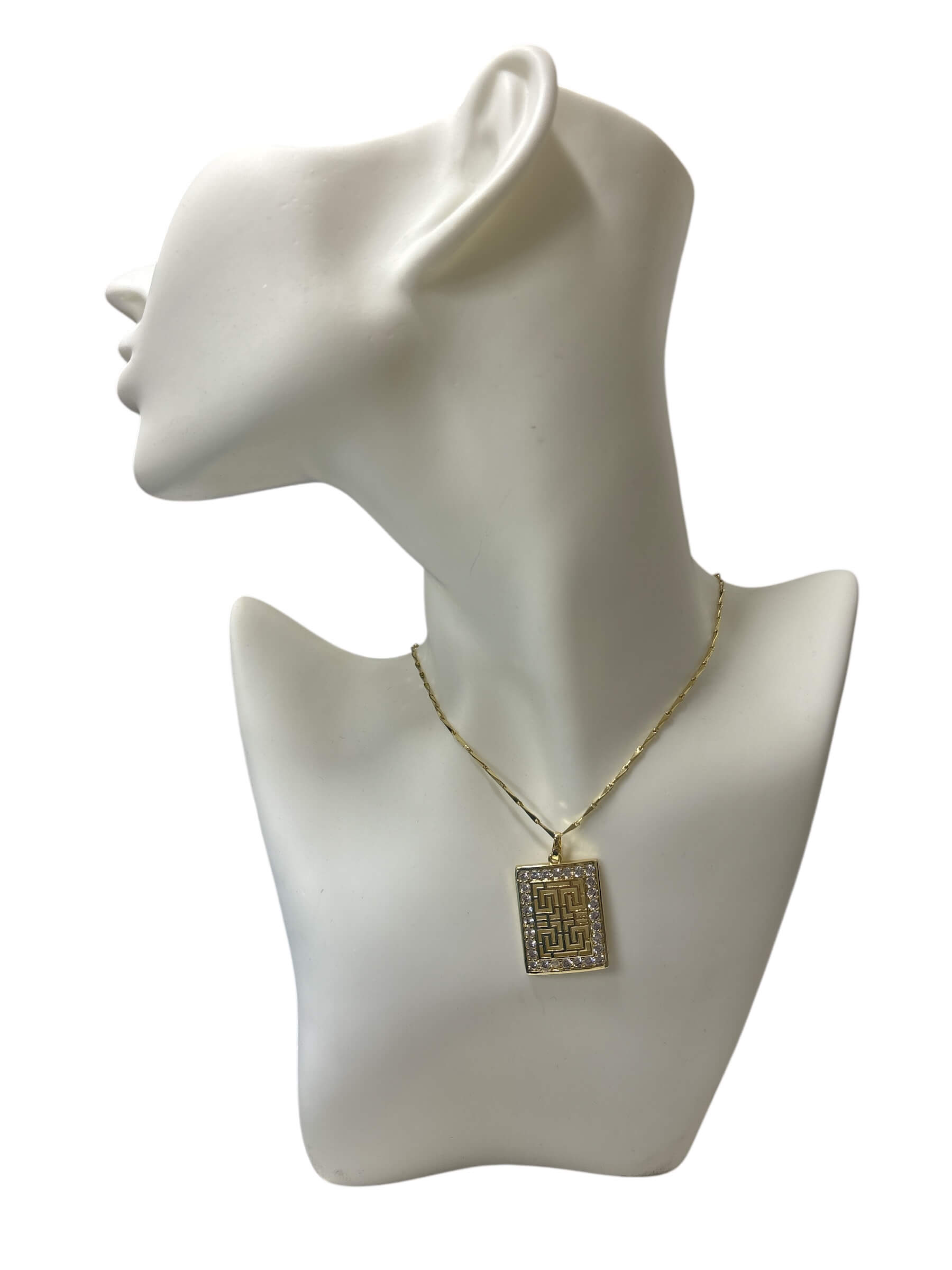 Naszyjnik stal chirurgiczna złoty prostokątna grecja z cyrkoniami