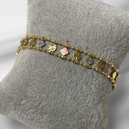 Bransoletka stal chirurgiczna złota trójkolorowe blaszki i kwadraciki