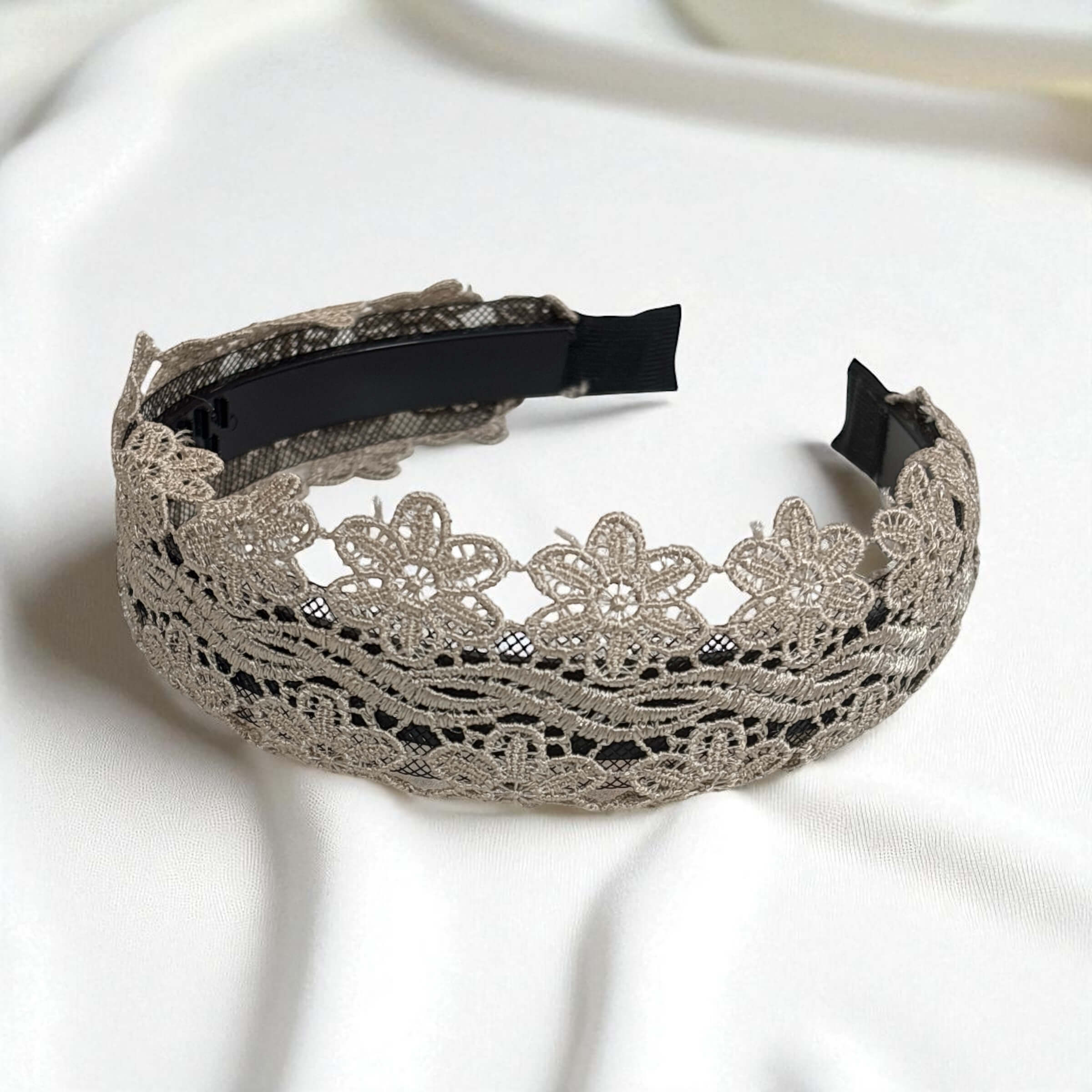 Koronkowa opaska z plecionym wzorem to delikatny, romantyczny dodatek, który podkreśli subtelność każdej fryzury. Idealna na wyjątkowe okazje i codzienną elegancję.