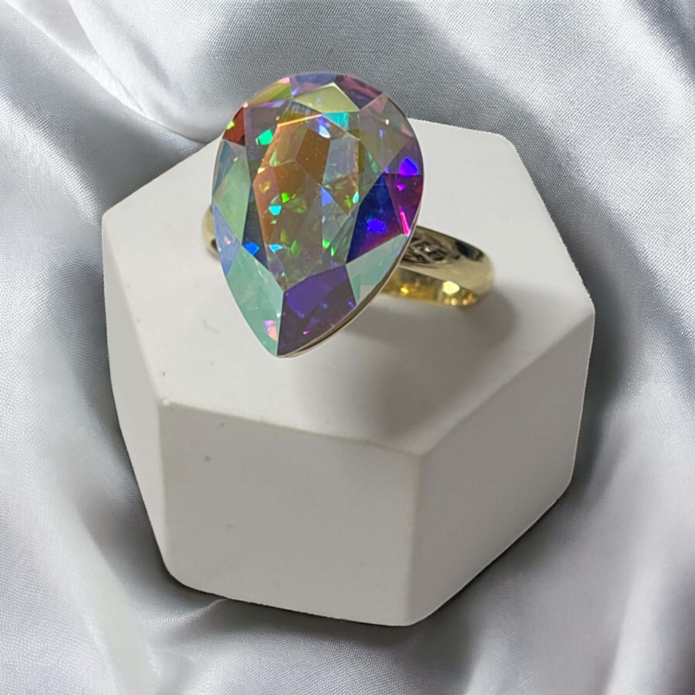 Pierścionek Złoty Stal kryształowa łezka holo