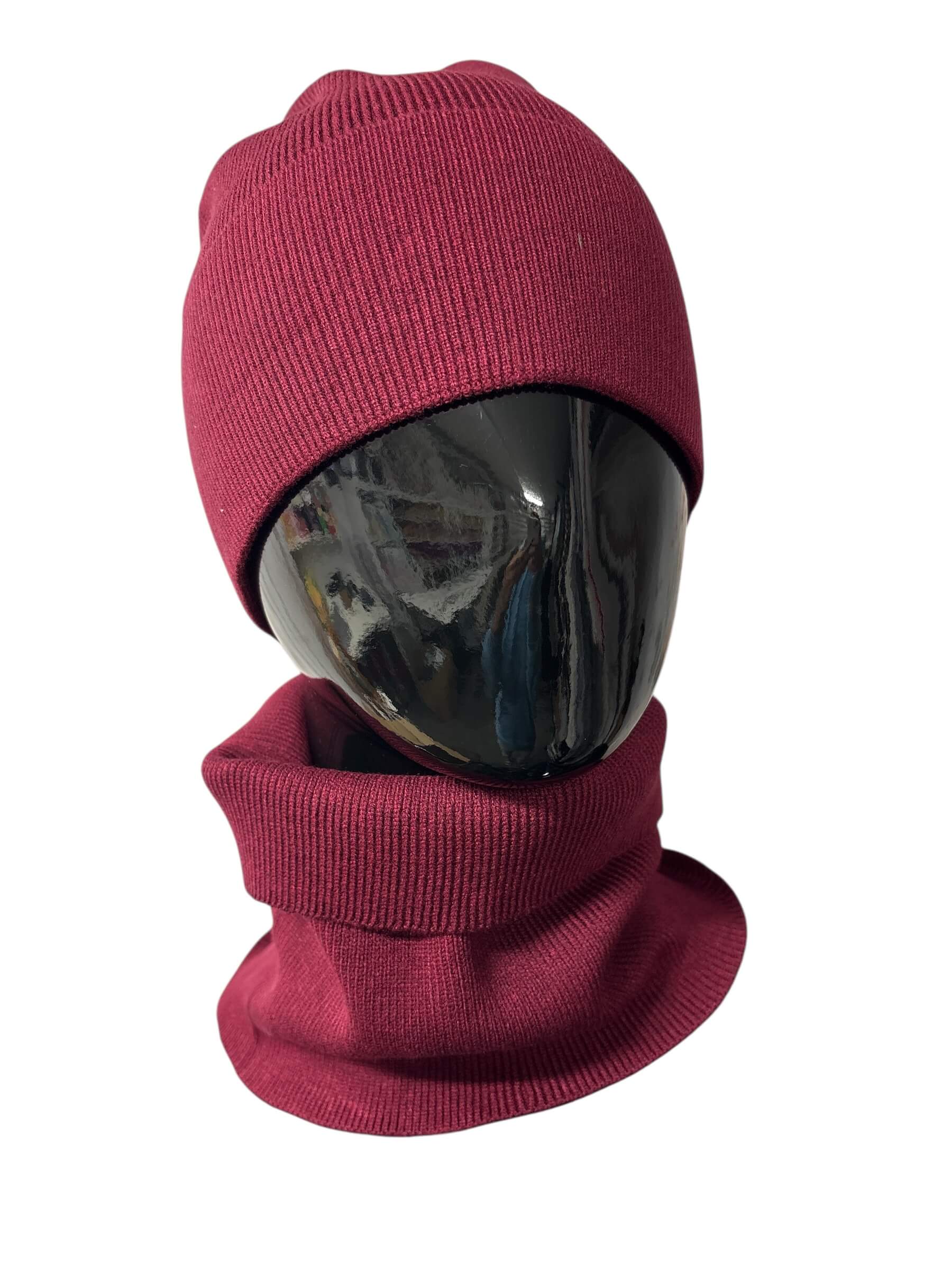 Podwójny komplet czapka + komin prążek GRANAT 36,00 zł