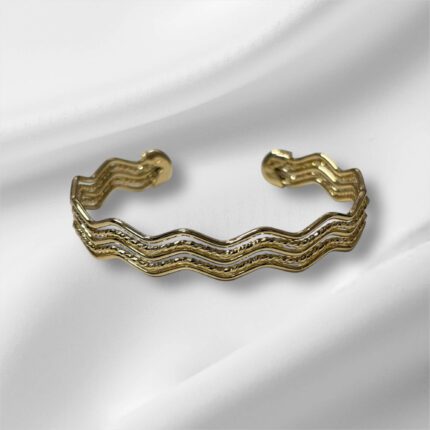 Bransoletka stal chirurgiczna sztywna otwarta złota potrójny zygzak