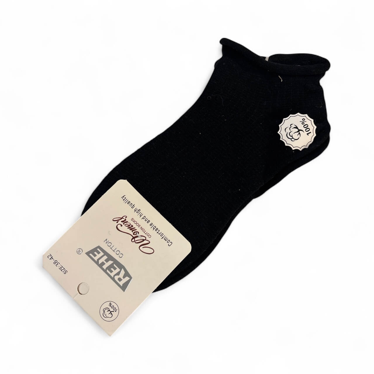 Skarpetki bezuciskowe czarne sięgające do kostki bez elastycznego ściągacza. Dzięki czemu nie będziesz miała uczucia spuchniętych stóp. Te skarpetki idealnie sprawdzą się podczas codziennego użytkowania! Chcieliśmy odpowiednio zadbać o wasze stopy. Dlatego, przygotowaliśmy skarpetki gładkie składające się w 95% z bawełny! W rezultacie czego, podrażnienia skóry nie będą miały miejsca. Co więcej bawełna bardzo szybko odprowadzi wilgoć. Co gwarantuje komfort podczas noszenia naszych skarpetek.