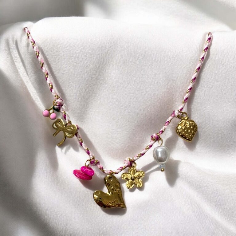 Naszyjnik na beżowej tasiemce z zawieszkami