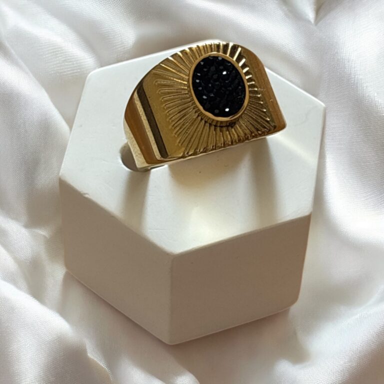 Pierścionek złoty stal chirurgiczna czarne lilu z gwiazdeczką
