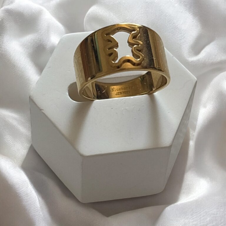 Pierścionek regulowany złoty stal chirurgiczna lilak regulowany