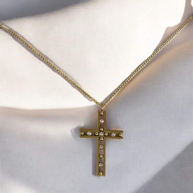 Naszyjnik stal chirurgiczna złoty krzyżyk z kryształkami