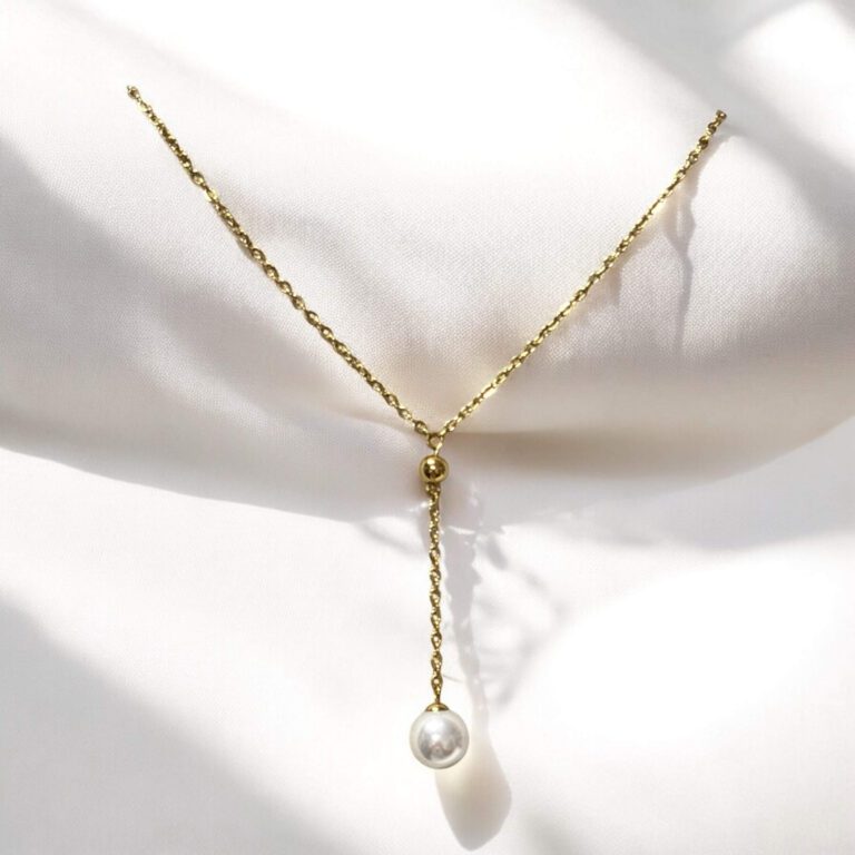 Krawatka stal chirurgiczna złota z perełką
