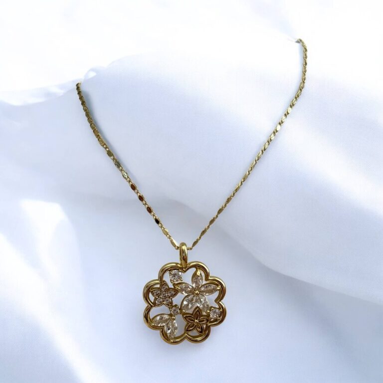 Naszyjnik stal chirurgiczna złoty kwiat z kryształowymi kwiatuszkami