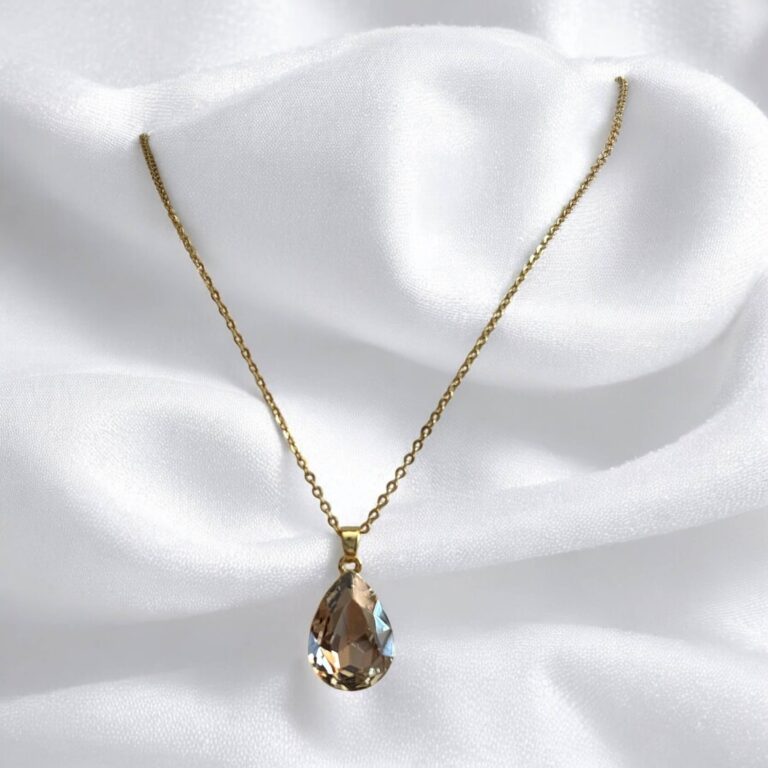 Naszyjnik stal chirurgiczna złoty kryształowa szara łezka